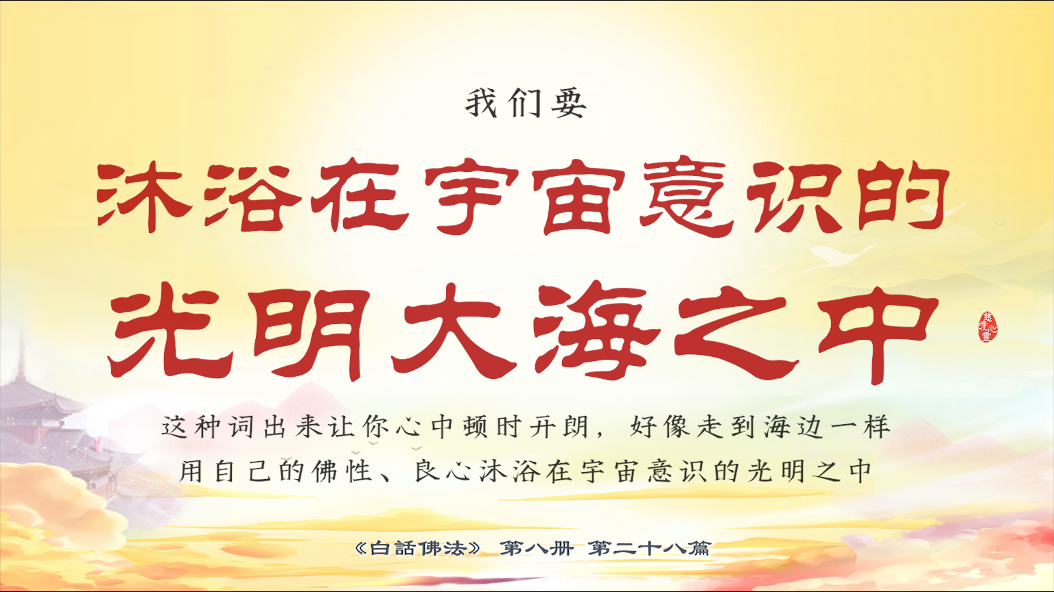 不限会员 8-28-1 我们要沐浴在宇宙意识的光明大海之中,这种词出来让你心中顿时开朗,好像走到海边一样,用自己的佛性、良心沐浴在宇宙意识的光明之中。【图】