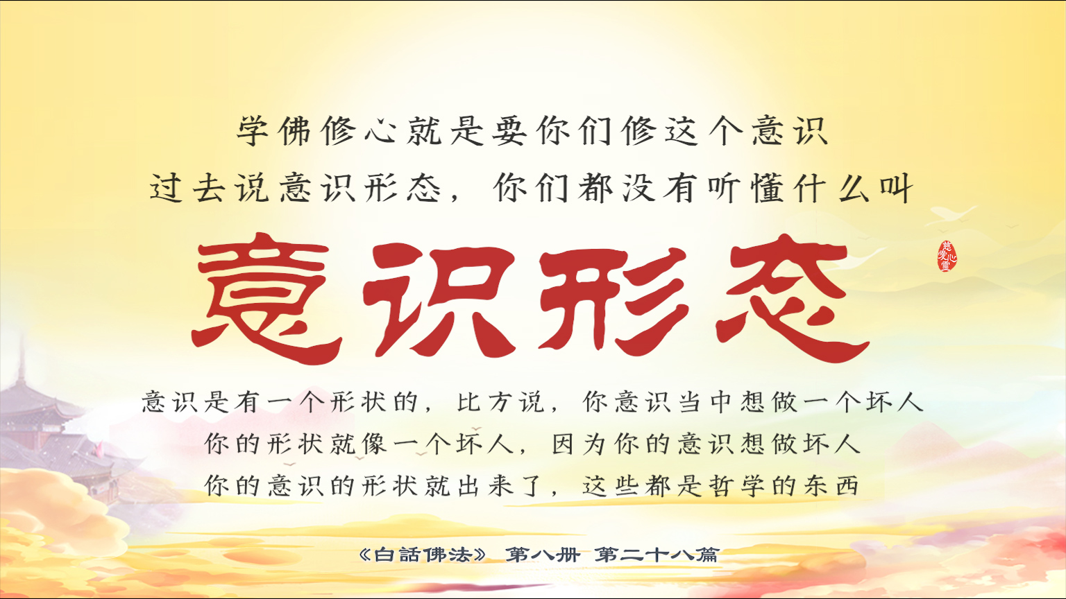 不限会员 8-28-3学佛修心就是要你们修这个意识,过去说意识形态...意识是有一个形状的,比方说你意识当中想做一个坏人,你的形状就像一个坏人...你的意识的形状就出来了,这些都是哲学的东西【图】