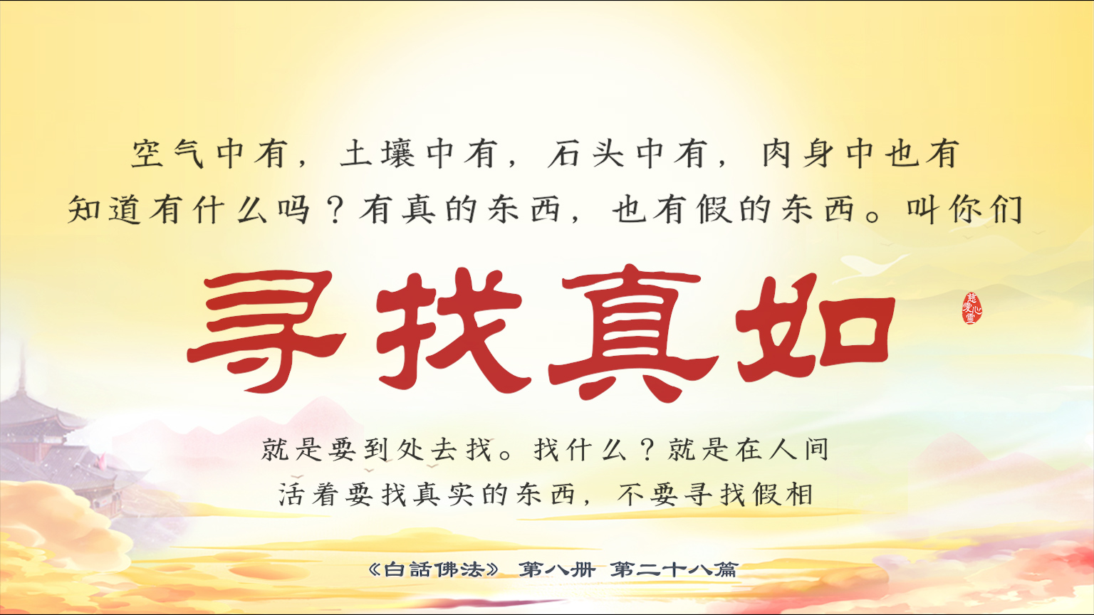 不限会员 8-28-8空气中有,土壤中有,石头中有,肉身中也有...有真的东西,也有假的东西。叫你们寻找真如,就是要到处去找。找什么?就是在人间活着要找真实的东西,不要寻找假相。【图】