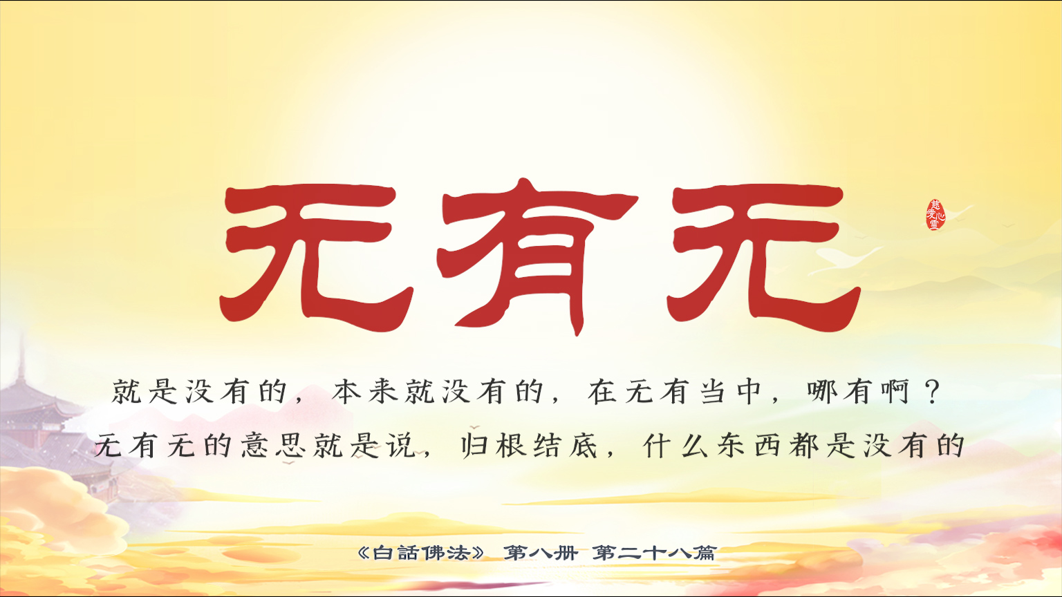不限会员 8-28-15 “无有无”就是没有的,本来就没有的,在无有当中,哪有啊?无有无的意思就是说,归根结底,什么东西都是没有的。【图】