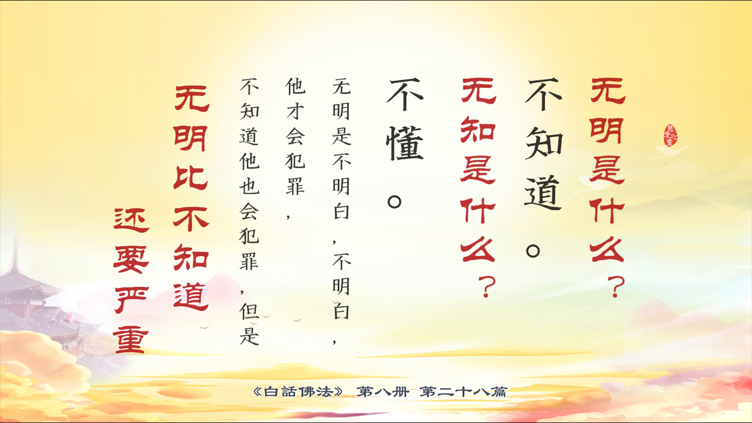 不限会员 8-28-23 无明是什么?不知道。无知是什么?不懂。无明是不明白,不明白,他才会犯罪,不知道他也会犯罪,但是无明比不知道还要严重。【图】