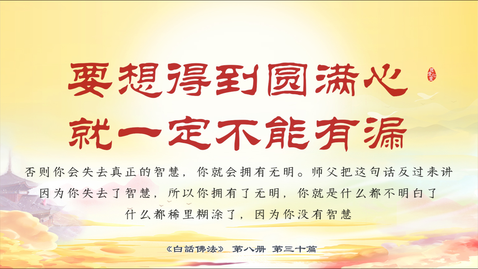 不限会员 8-30-7 要想得到圆满心,就一定不能有漏,否则你会失去真正的智慧,你就会拥有无明...因为你失去了智慧,所以你拥有了无明,你就是什么都不明白了...因为你没有智慧。【图】