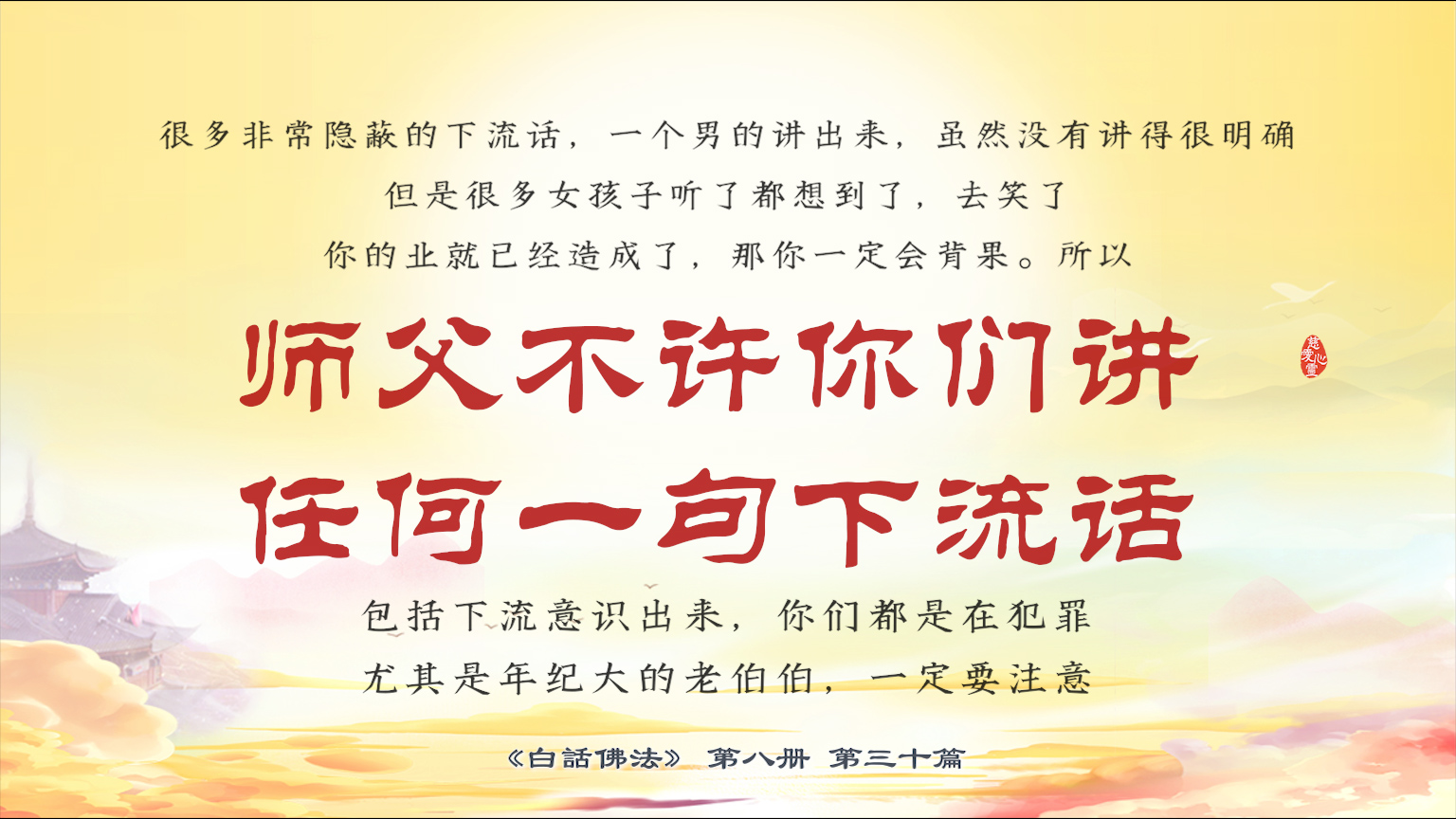 不限会员 8-30-12非常隐蔽的下流话,一个男的讲出来虽然没有讲得很明确,很多女孩子听了笑了,你的业就已经造成了一定会背果...师父不许你们讲任何一句下流话,包括下流意识出来,都是在犯罪【图】