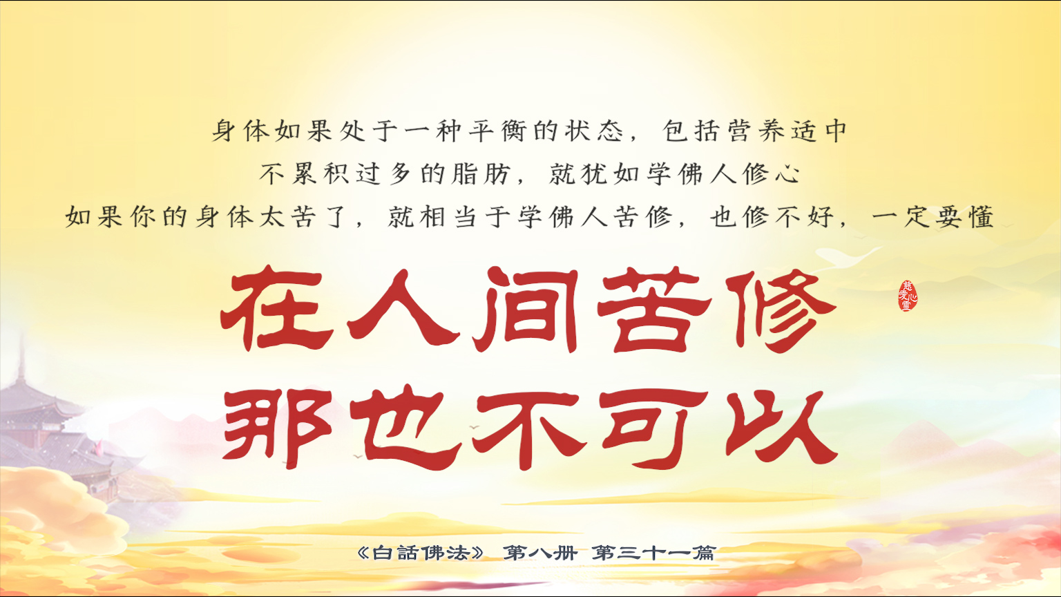 不限会员 8-31-9 身体如果处于一种平衡的状态,包括营养适中,不累积过多的脂肪,就犹如学佛人修心,如果你的身体太苦了,就相当于学佛人苦修,也修不好,一定要懂,在人间苦修那也不可以。【图】