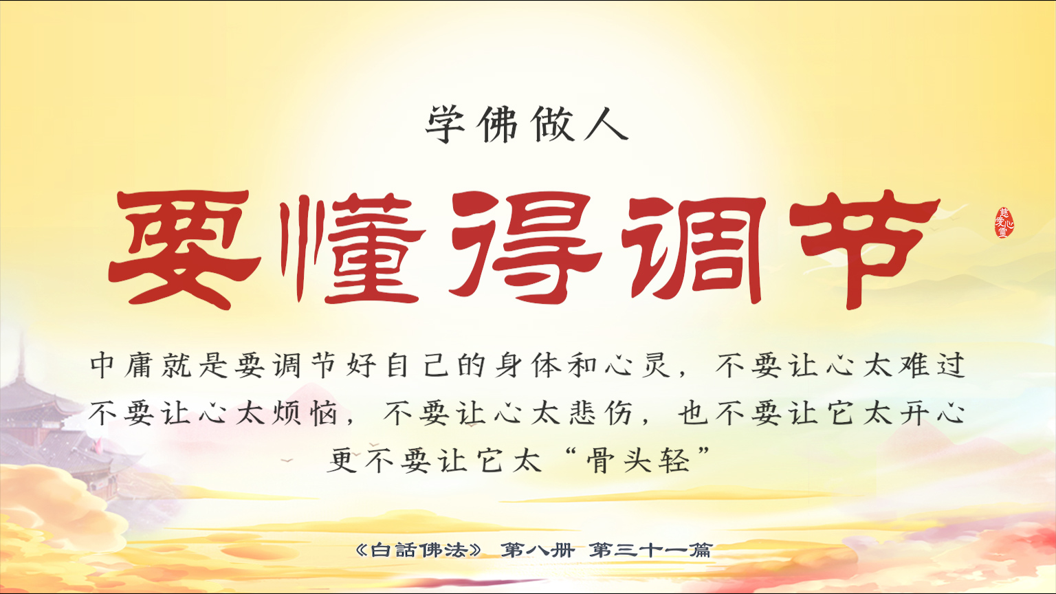 不限会员 8-31-14 学佛做人要懂得调节,中庸就是要调节好自己的身体和心灵,不要让心太难过,不要让心太烦恼,不要让心太悲伤,也不要让它太开心,更不要让它太“骨头轻”。【图】
