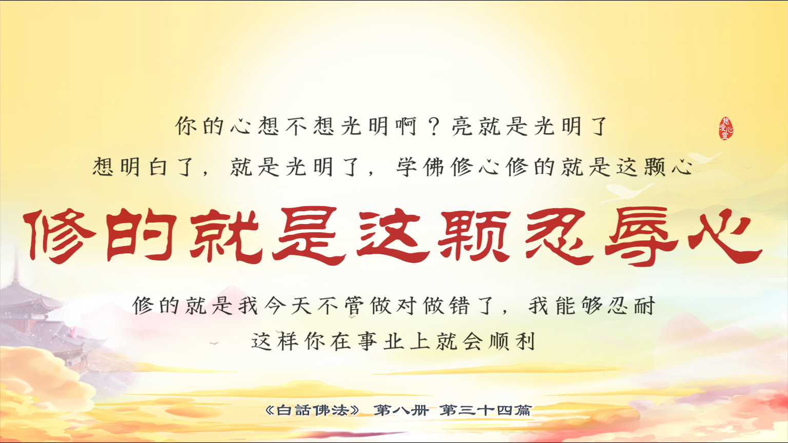 不限会员 8-34-22你的心想不想光明啊...想明白了,就是光明了,学佛修心修的就是这颗心,修的就是这颗忍辱心,修的就是我今天不管做对做错了,我能够忍耐,这样你在事业上就会顺利。【图】