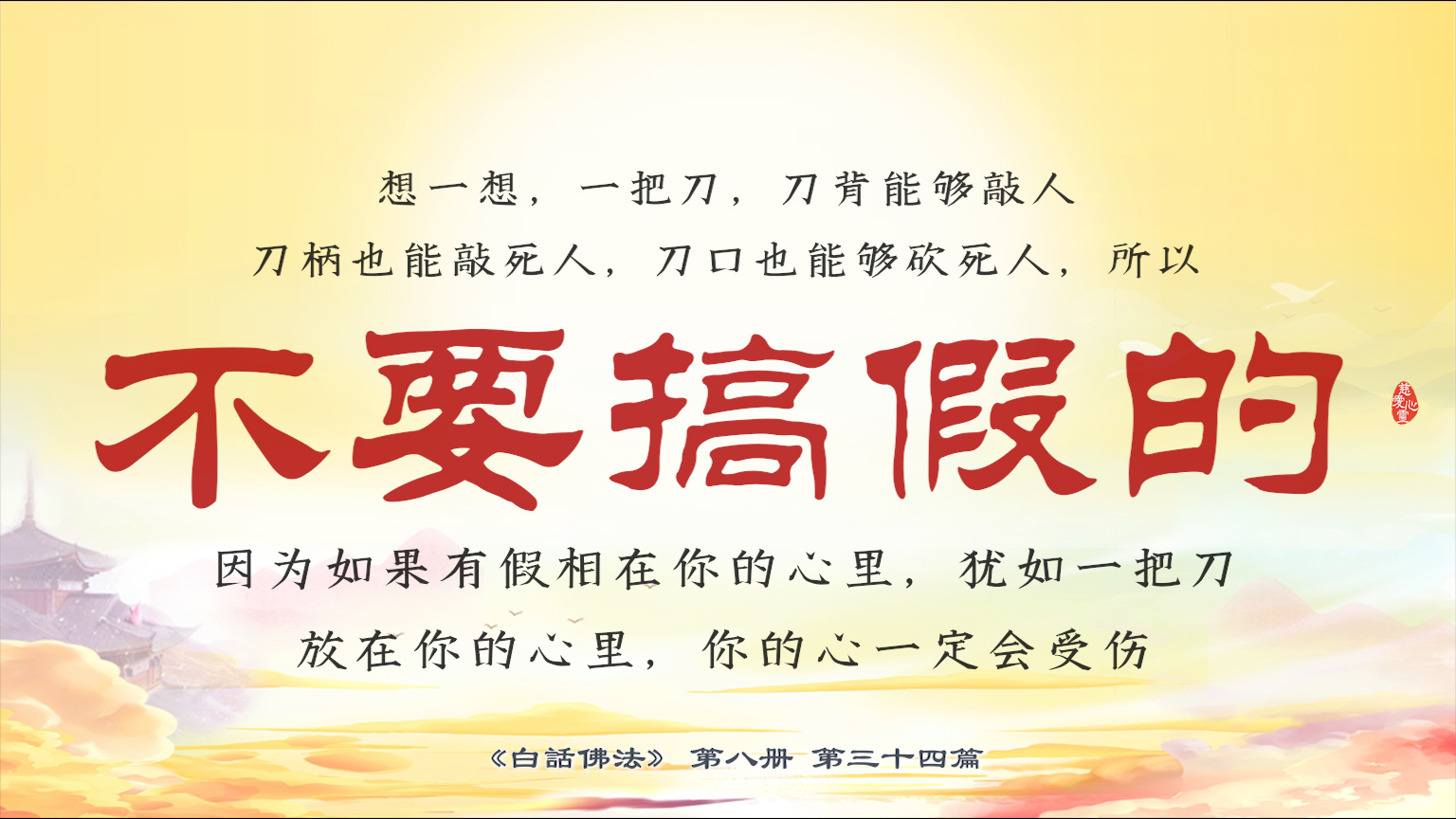 不限会员 8-34-25想一想,一把刀,刀背能够敲人,刀柄也能敲死人,刀口也能够砍死人,所以,不要搞假的,因为如果有假相在你的心里,犹如一把刀放在你的心里,你的心一定会受伤。【图】