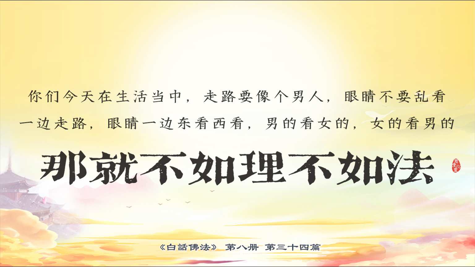 不限会员 8-34-27你们今天在生活当中,走路要像个男人,眼睛不要乱看,一边走路,眼睛一边东看西看,男的看女的,女的看男的,那就不如理不如法。【图】