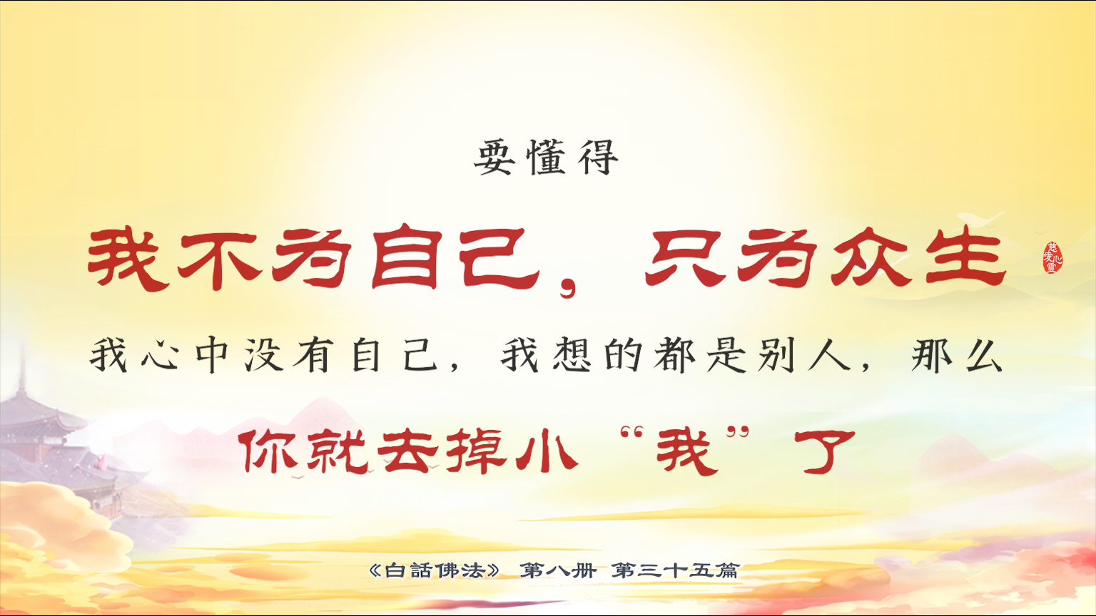 不限会员 8-35-3 要懂得,我不为自己,只为众生,我心中没有自己,我想的都是别人,那么你就去掉小“我”了。【图】