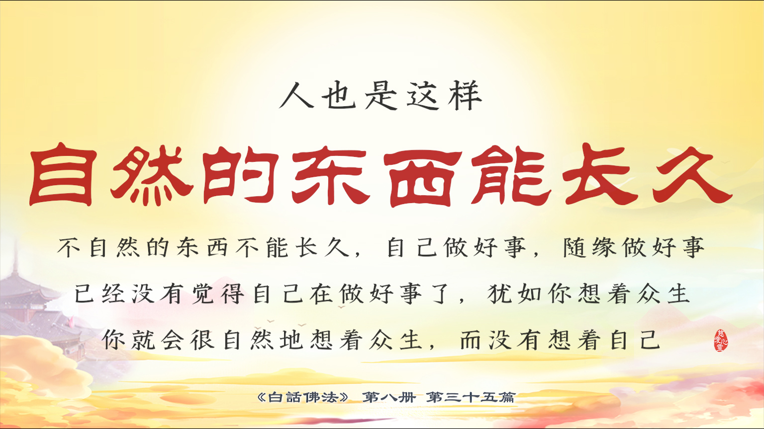 不限会员 8-35-11人也是这样,自然的东西能长久,不自然的东西不能长久,自己做好事,随缘做好事,已经没有觉得自己在做好事了,犹如你想着众生,你就会很自然地想着众生,而没有想着自己。【图】