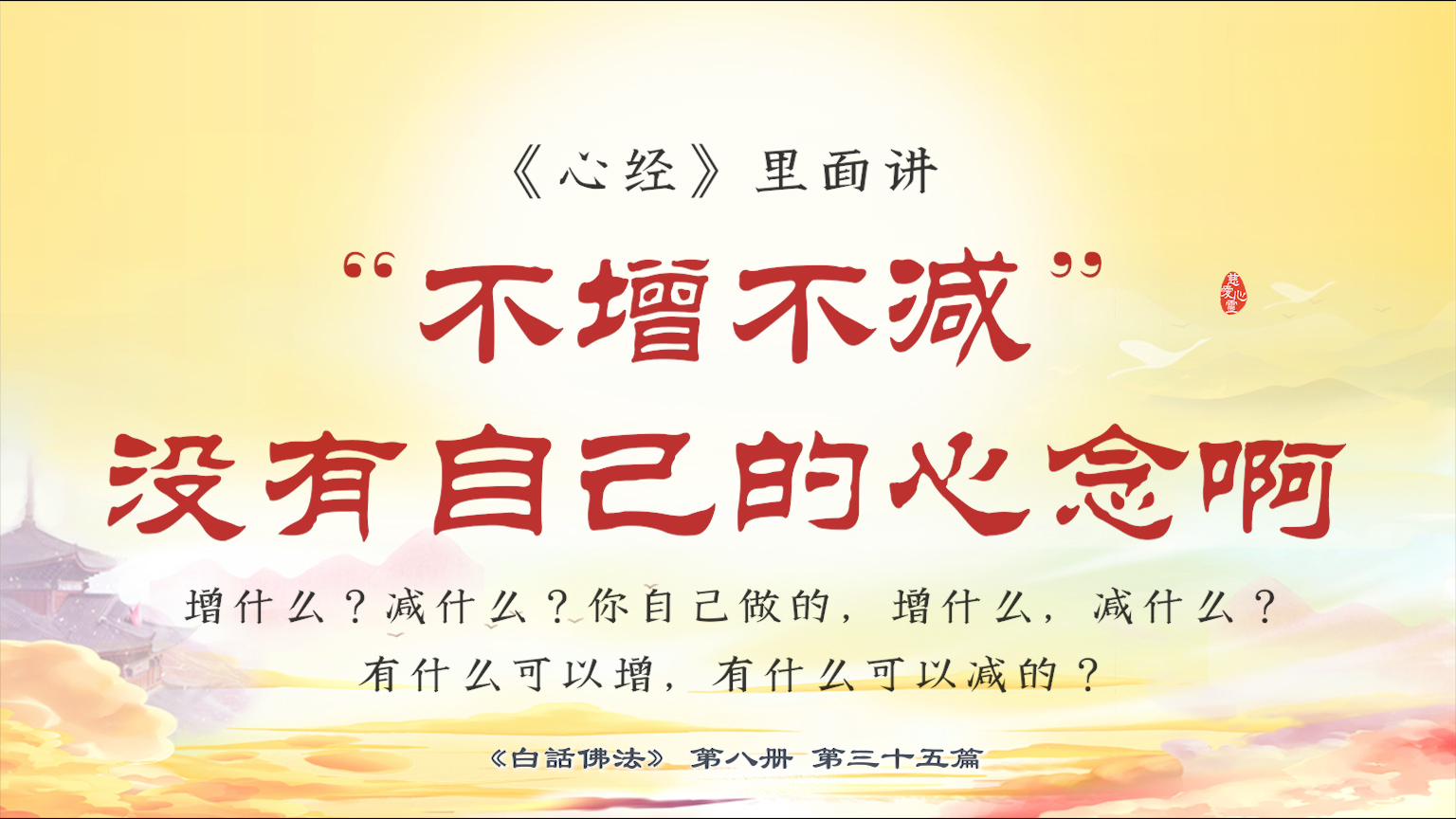 不限会员 8-35-15 《心经》里面讲“不增不减”,没有自己的心念啊,增什么?减什么?你自己做的,增什么,减什么?有什么可以增,有什么可以减的?【图】