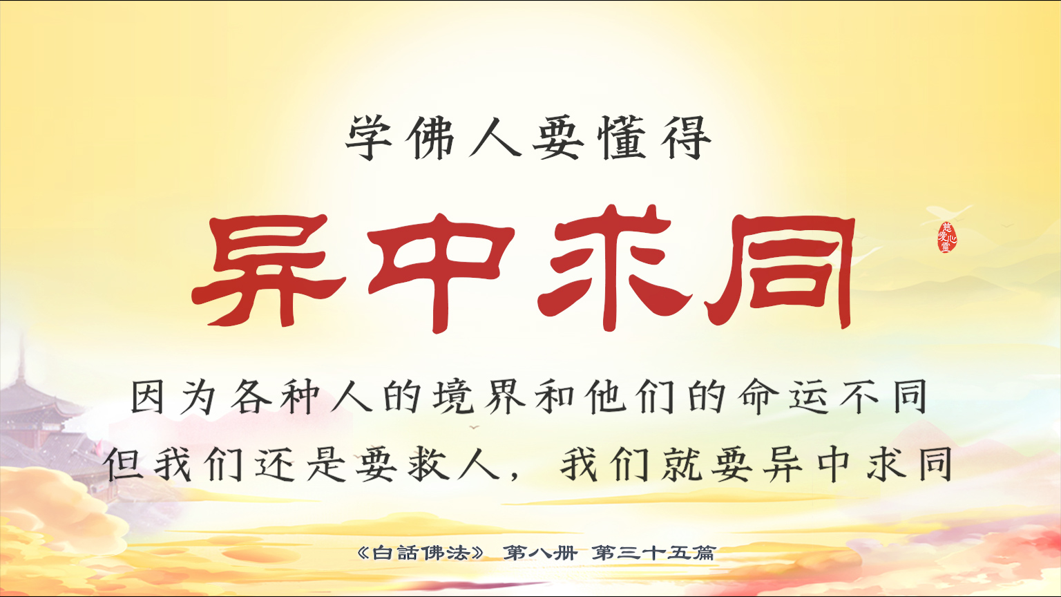 不限会员 8-35-17 学佛人要懂得异中求同,因为各种人的境界和他们的命运不同,但我们还是要救人,我们就要异中求同。【图】