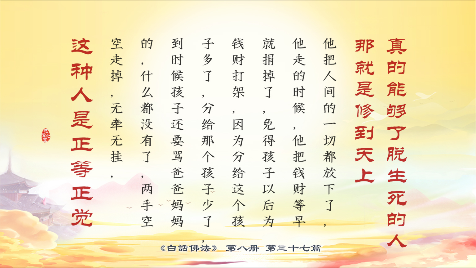 不限会员 8-37-18真的能够了脱生死的人,那就是修到天上,他把人间的一切都放下了,他走的时候,他把钱财等早就捐掉了...什么都没有了,两手空空走掉,无牵无挂,这种人是正等正觉。【图】