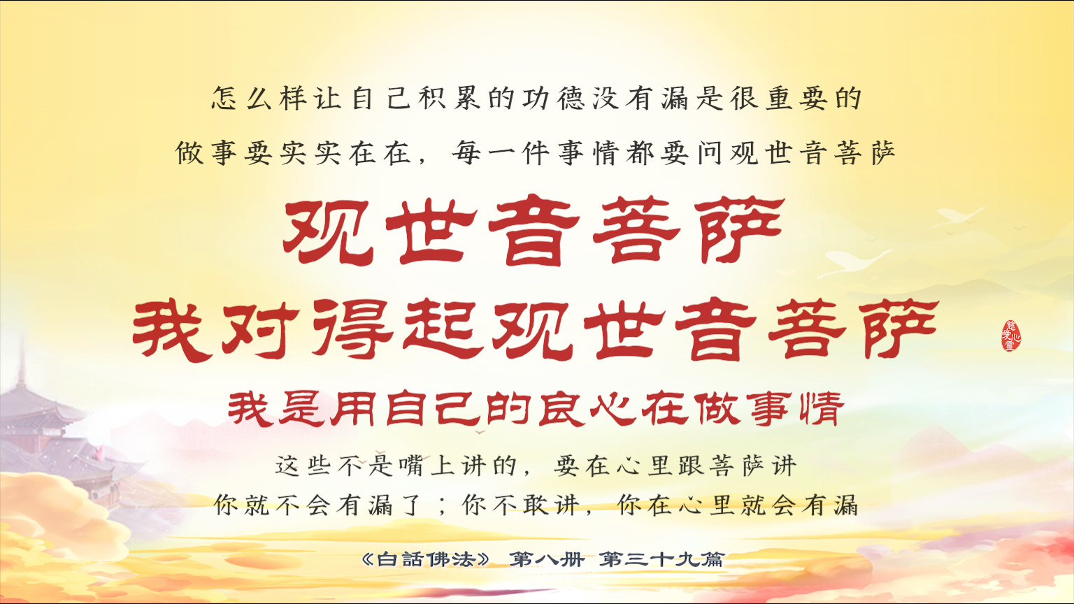 不限会员 8-39-18让自己积累的功德没有漏是很重要的...每一件事情都要问观世音菩萨:“我对得起观世音菩萨,我是用自己的良心在做事情。”要在心里跟菩萨讲,你就不会有漏了;【图】