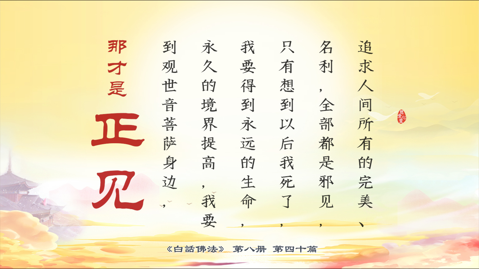 不限会员 8-40-15 追求人间所有的完美、名利,全部都是邪见,只有想到以后我死了,我要得到永远的生命,永久的境界提高,我要到观世音菩萨身边,那才是正见。【图】
