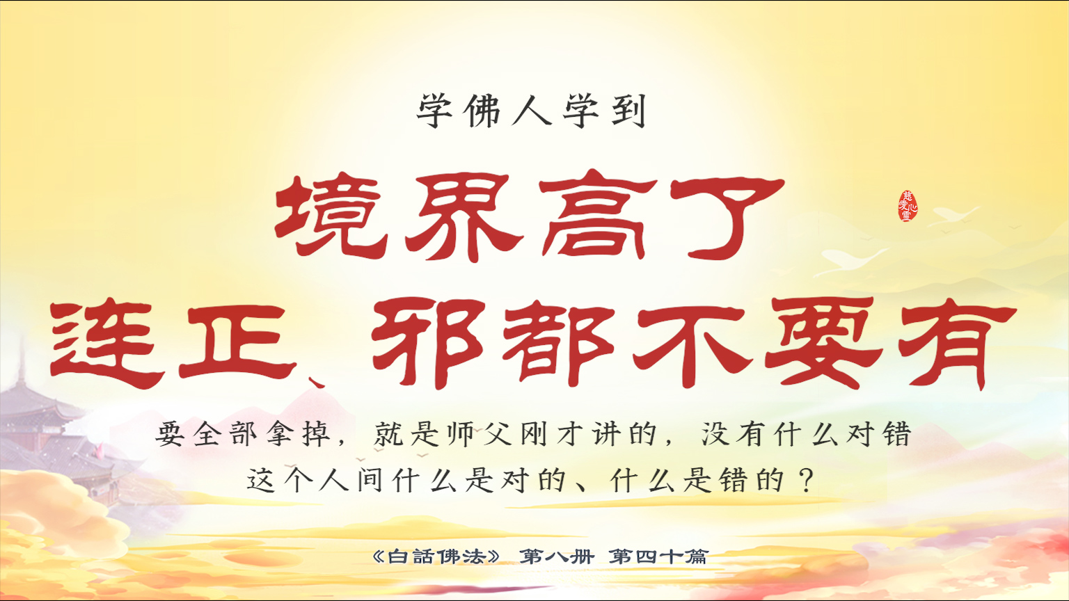 不限会员 8-40-16 学佛人学到境界高了,连正、邪都不要有,要全部拿掉,就是师父刚才讲的,没有什么对错,这个人间什么是对的、什么是错的?【图】