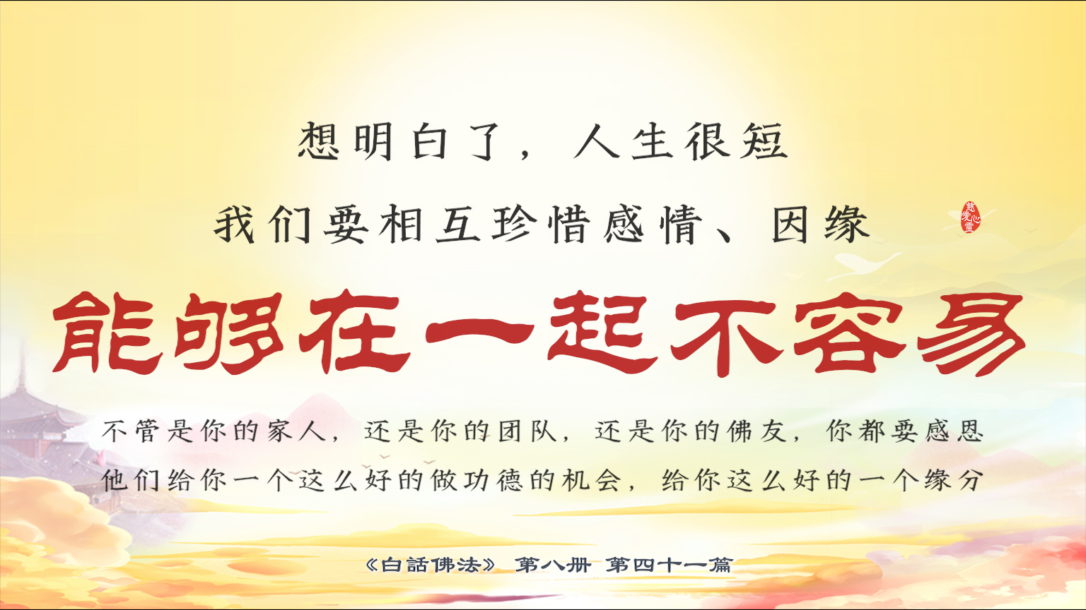不限会员 8-41-11人生很短,我们要相互珍惜感情、因缘,能够在一起不容易啊,不管是你的家人团队佛友,你都要感恩他们给你一个这么好的做功德的机会,给你这么好的一个缘分。【图】