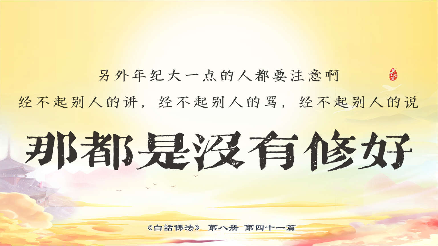 不限会员 8-41-15 另外年纪大一点的人都要注意啊,经不起别人的讲,经不起别人的骂,经不起别人的说,那都是没有修好。【图】