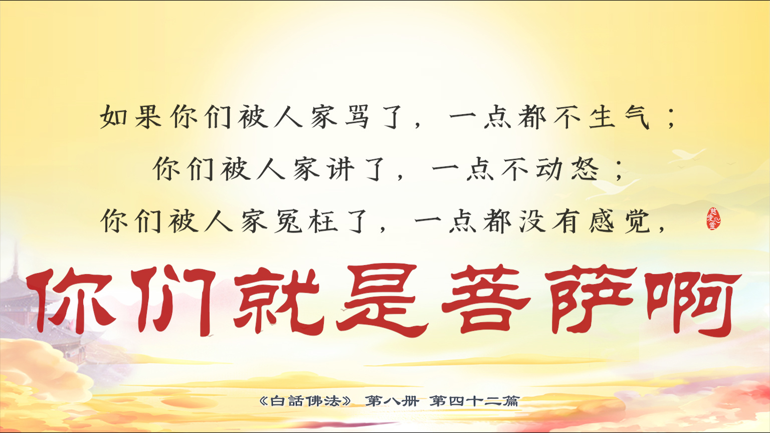 不限会员 8-42-11 如果你们被人家骂了,一点都不生气;你们被人家讲了,一点不动怒;你们被人家冤枉了,一点都没有感觉,你们就是菩萨啊。【图】