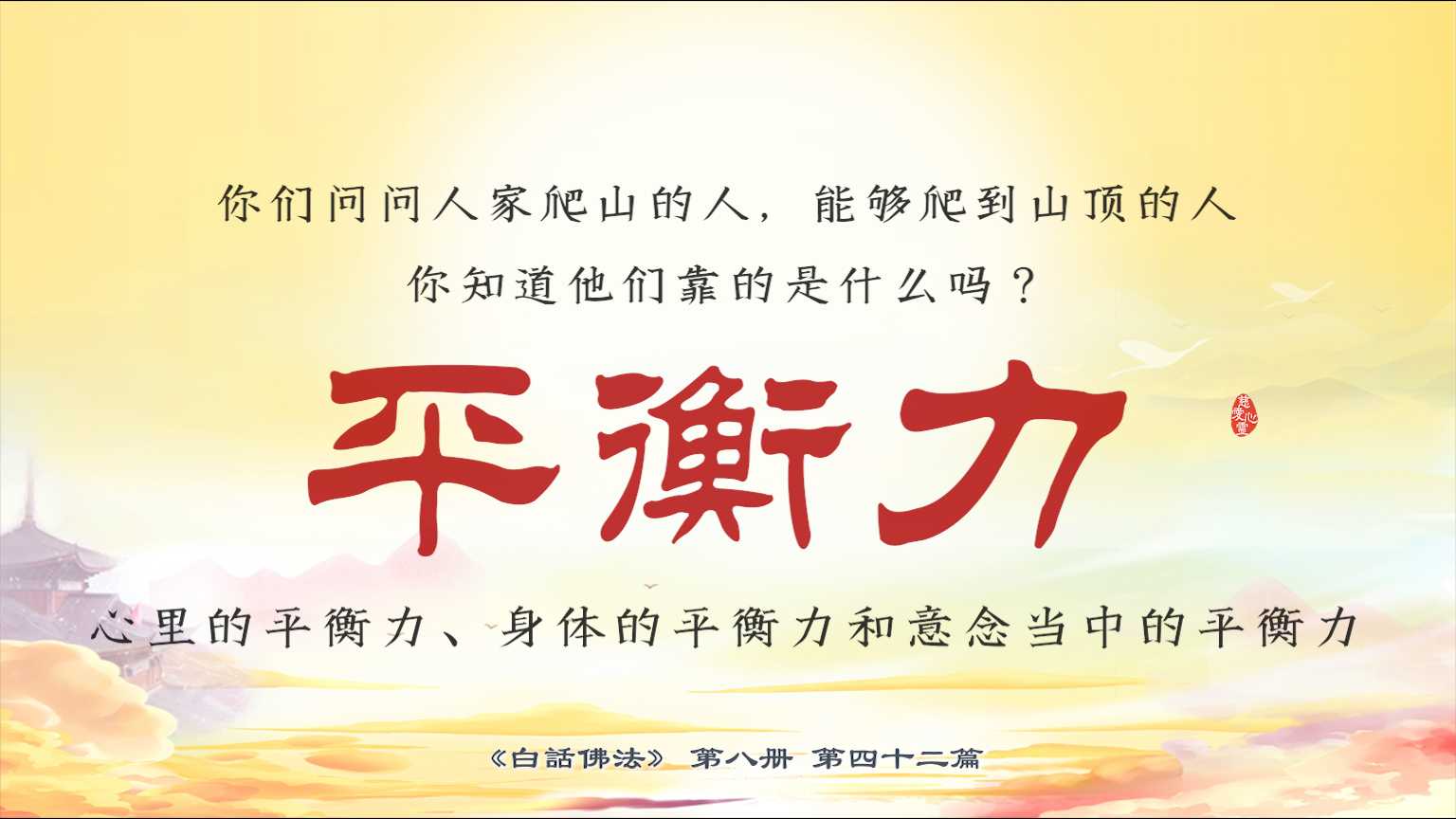 不限会员 8-42-17 你们问问人家爬山的人,能够爬到山顶的人,你知道他们靠的是什么吗?平衡力,心里的平衡力、身体的平衡力和意念当中的平衡力。【图】