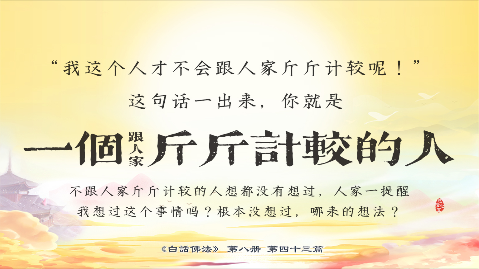 不限会员 8-43-3“我这个人才不会跟人家斤斤计较呢!”这句话一出来,你就是一个跟人家斤斤计较的人。不跟人家斤斤计较的人想都没有想过...我想过这个事情吗?根本没想过,哪来的想法?【图】