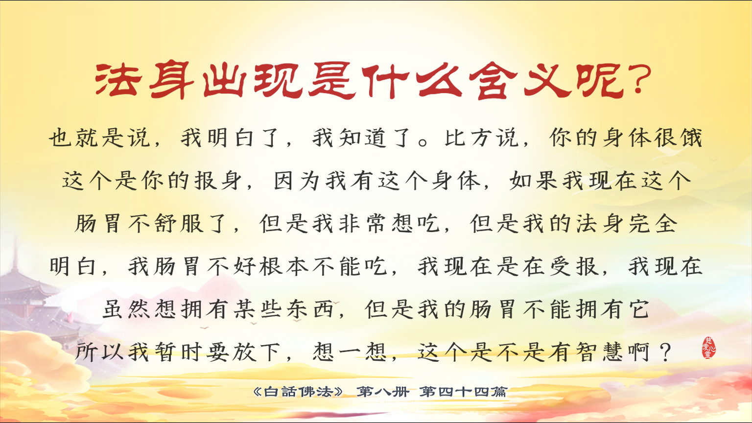 不限会员 8-44-15 法身出现也就是说,我明白了,我知道了...我现在是在受报,我现在虽然想拥有某些东西...所以我暂时要放下,想一想,这个是不是有智慧啊?【图】