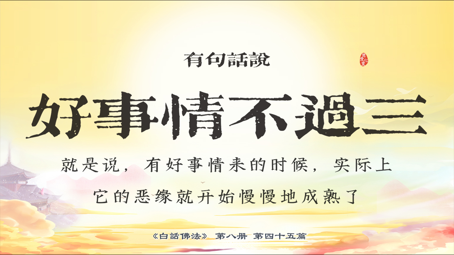下一篇 : 8-45-7 恶事并不见得是件坏事。很多人为什么会学佛的?就