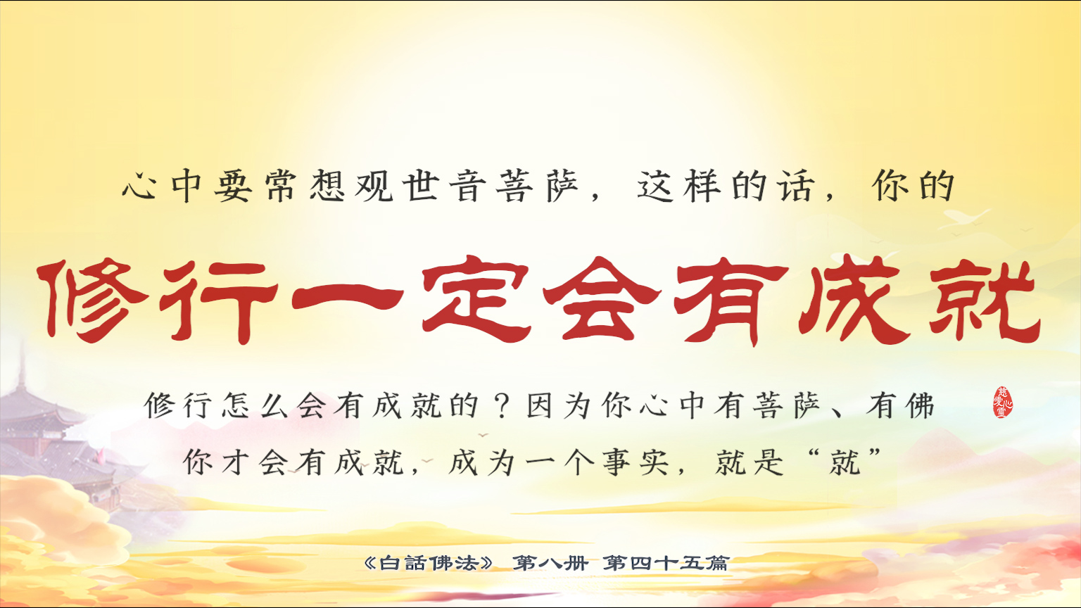不限会员 8-45-10 心中要常想观世音菩萨,这样的话,你的修行一定会有成就。修行怎么会有成就的?因为你心中有菩萨、有佛,你才会有成就,成为一个事实,就是“就”。【图】