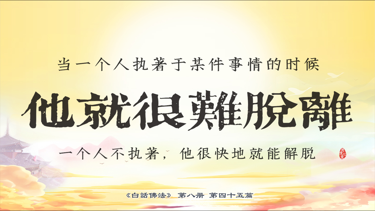 不限会员 8-45-13 当一个人执著于某件事情的时候,他就很难脱离;一个人不执著,他很快地就能解脱。【图】
