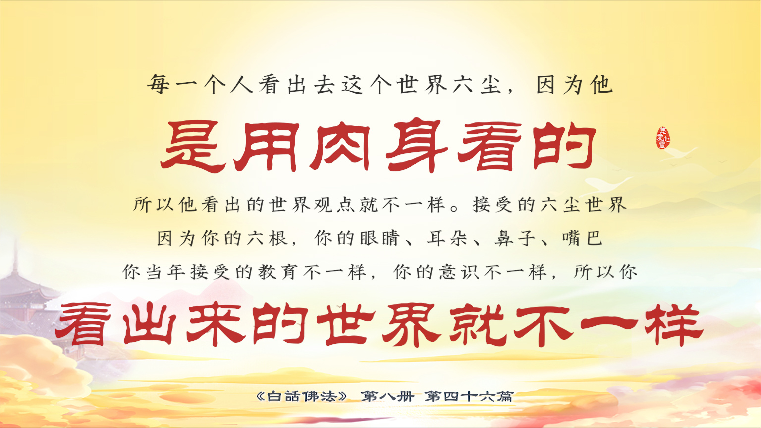 不限会员 8-46-6每一个人看出去这个世界六尘...他是用肉身看的...看出的世界观点就不一样...你的六根,你的眼睛耳朵鼻子嘴巴...接受的教育不一样,你的意识不一样,所以你看出来的世界就不一样。【图】