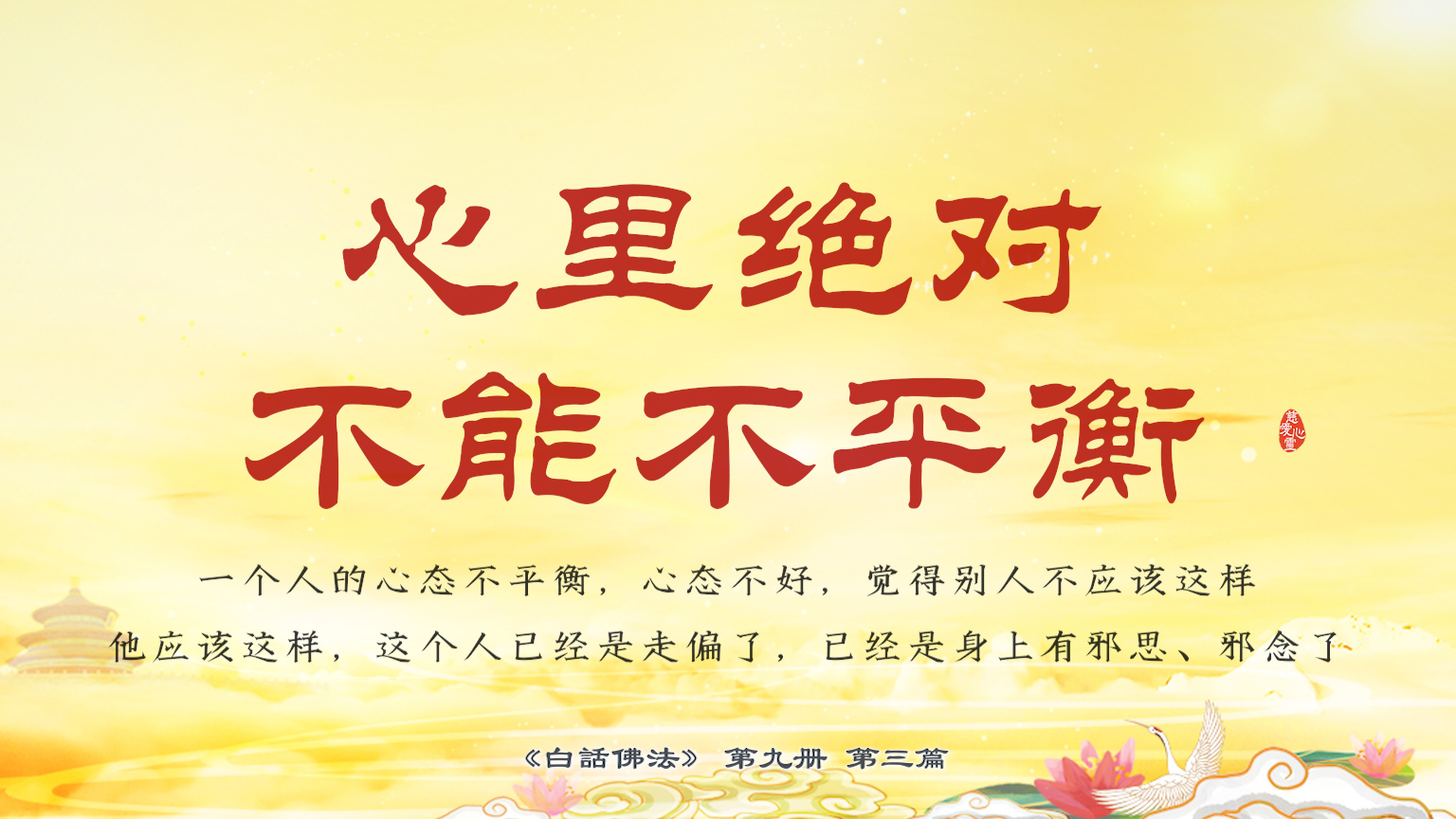不限会员 9-3-2心里绝对不能不平衡,一个人的心态不平衡,心态不好,觉得别人不应该这样,他应该这样,这个人已经是走偏了,已经是身上有邪思、邪念了【图】