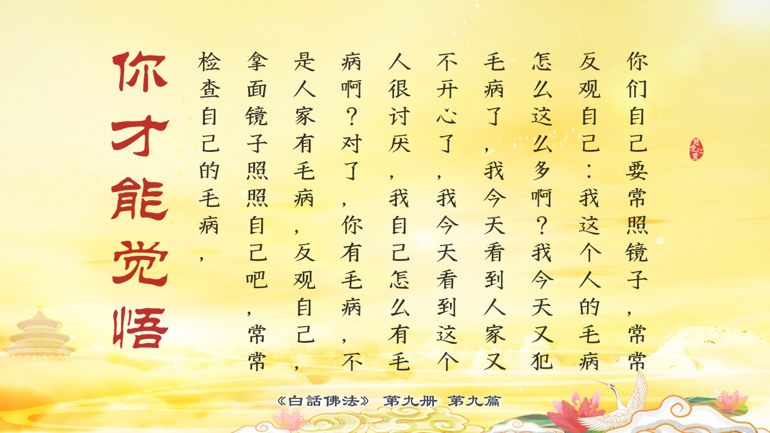 不限会员 9-9-14你们自己要常照镜子,常常反观自己:我这个人的毛病怎么这么多啊?...对了,你有毛病,不是人家有毛病,反观自己,拿面镜子照照自己吧,常常检查自己的毛病,你才能觉悟【图】