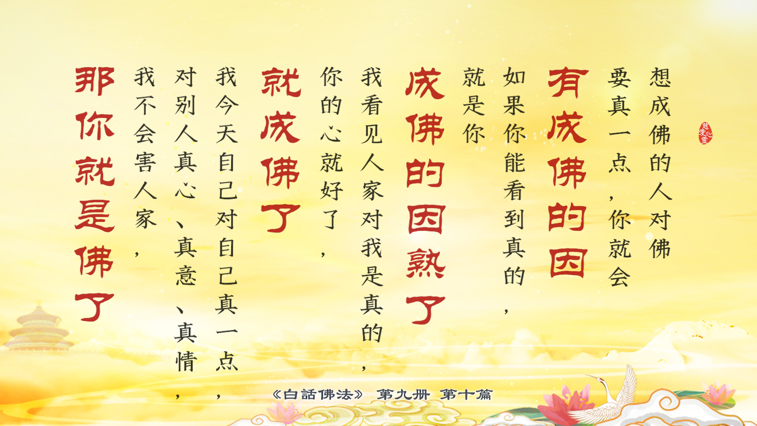 不限会员 9-10-5想成佛的人对佛要真一点,你就会有成佛的因。如果你能看到真的,就是你成佛的因熟了。我看见人家对我是真的,你的心就好了,就成佛了。...【图】