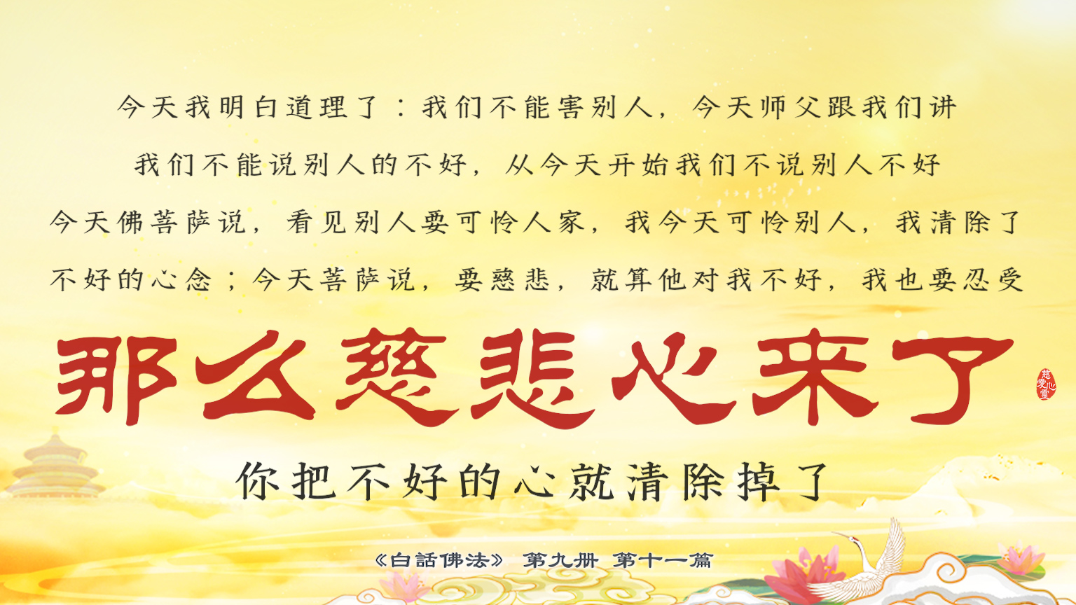 不限会员 9-11-2今天我明白道理了:我们不能害别人,今天师父跟我们讲我们不能说别人的不好..今天菩萨说,要慈悲,就算他对我不好,我也要忍受,那么慈悲心来了,你把不好的心就清除掉了【图】