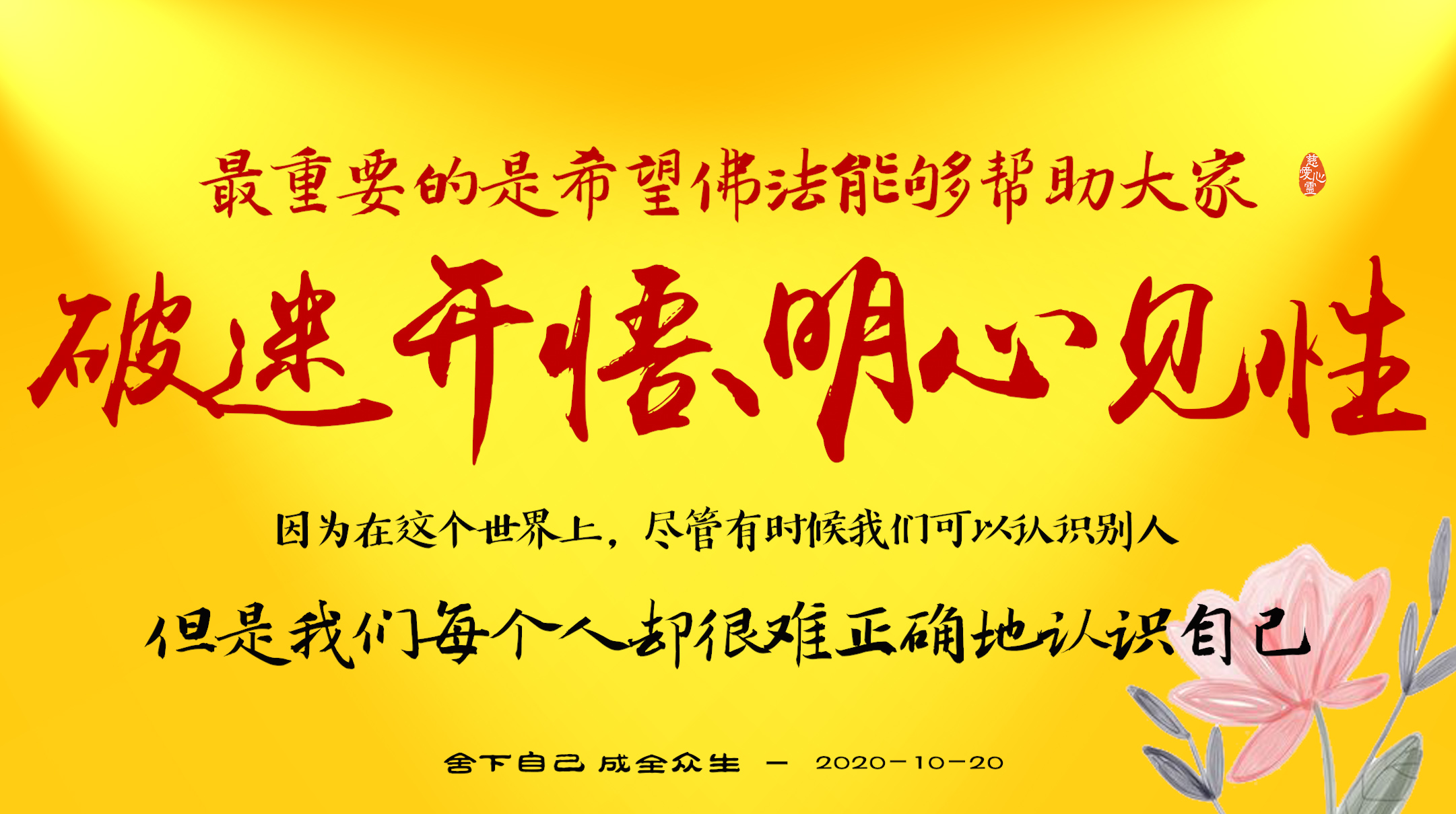 不限会员 2020-10-20-1 最重要的是希望佛法能够帮助大家破迷开悟、明心见性,因为在这个世界上,尽管有时候我们可以认识别人,但是我们每个人却很难正确地认识自己。.jpg