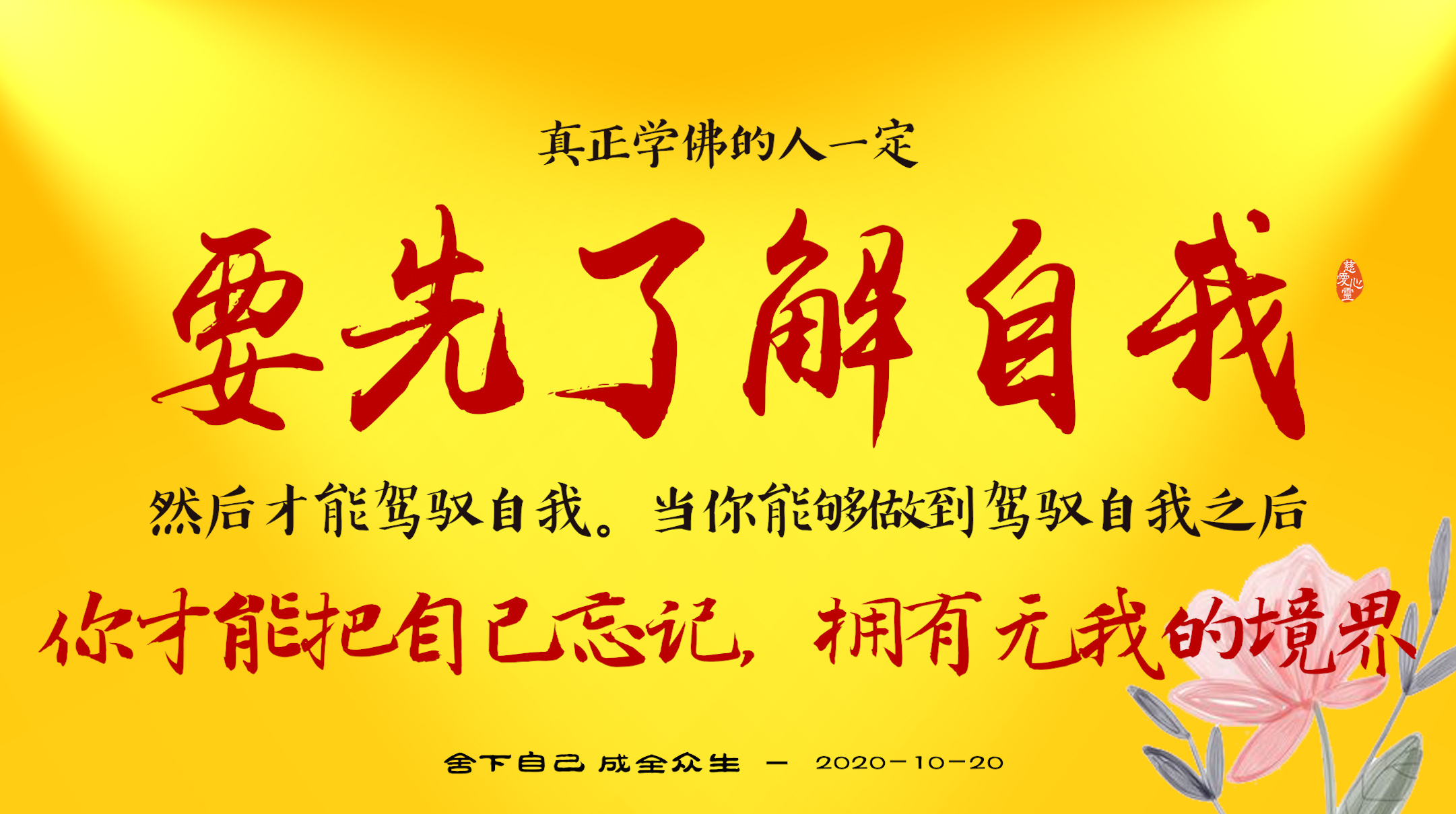 不限会员 2020-10-20-6 真正学佛的人一定要先了解自我,然后才能驾驭自我。当你能够做到驾驭自我之后,你才能把自己忘记,拥有无我的境界。.jpg