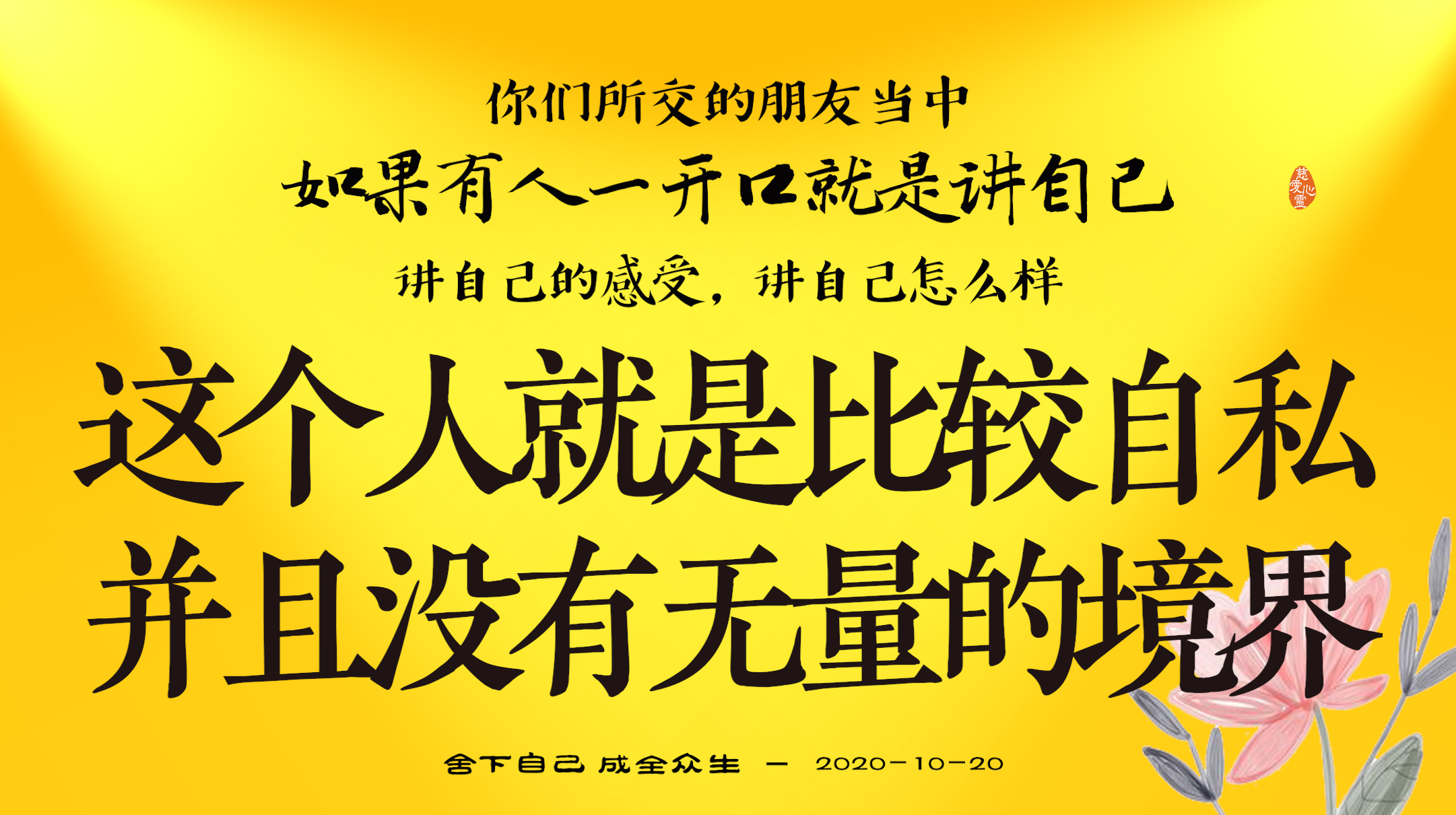 不限会员 2020-10-20-9 你们所交的朋友当中,如果有人一开口就是讲自己,讲自己的感受,讲自己怎么样,这个人就是比较自私,并且没有无量的境界。.jpg