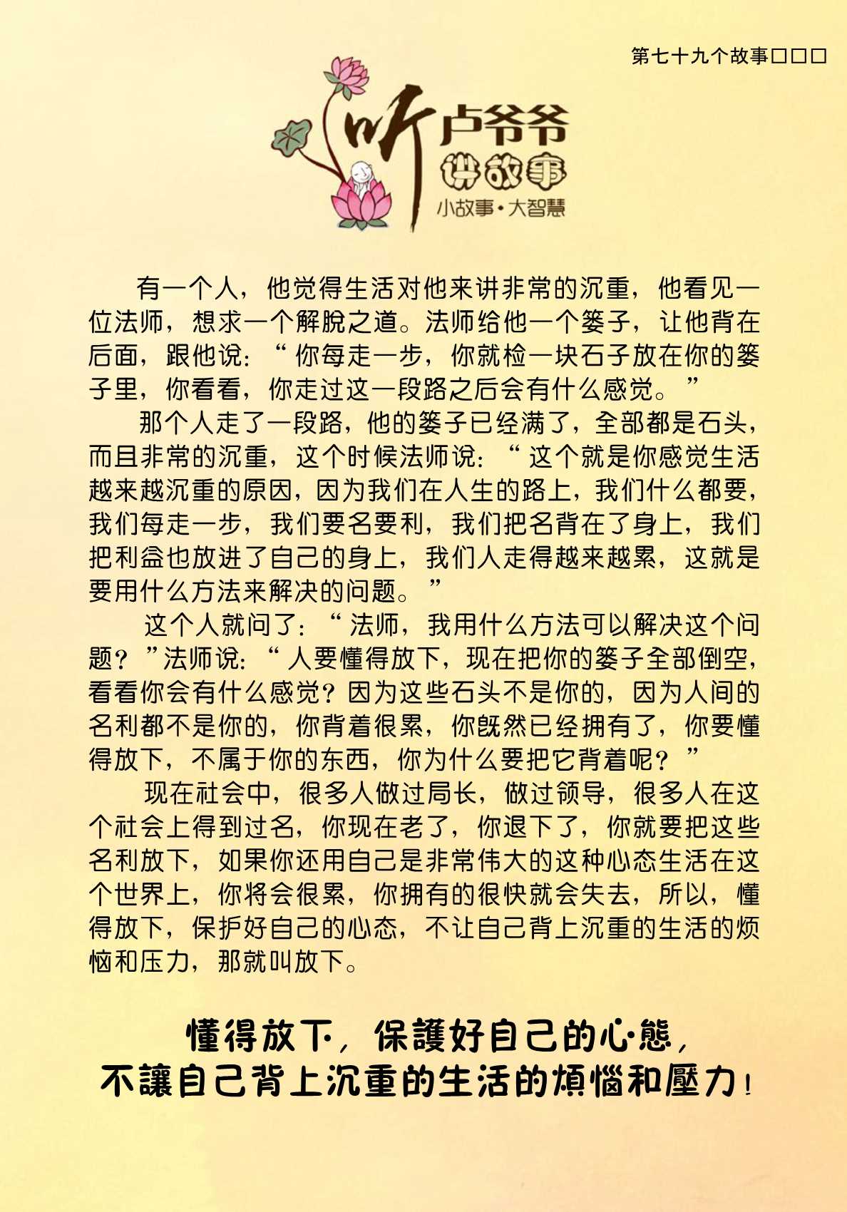 不限会员 079、懂得放下,保护好自己的心态,不让自己背上沉重的生活的烦恼和压力!