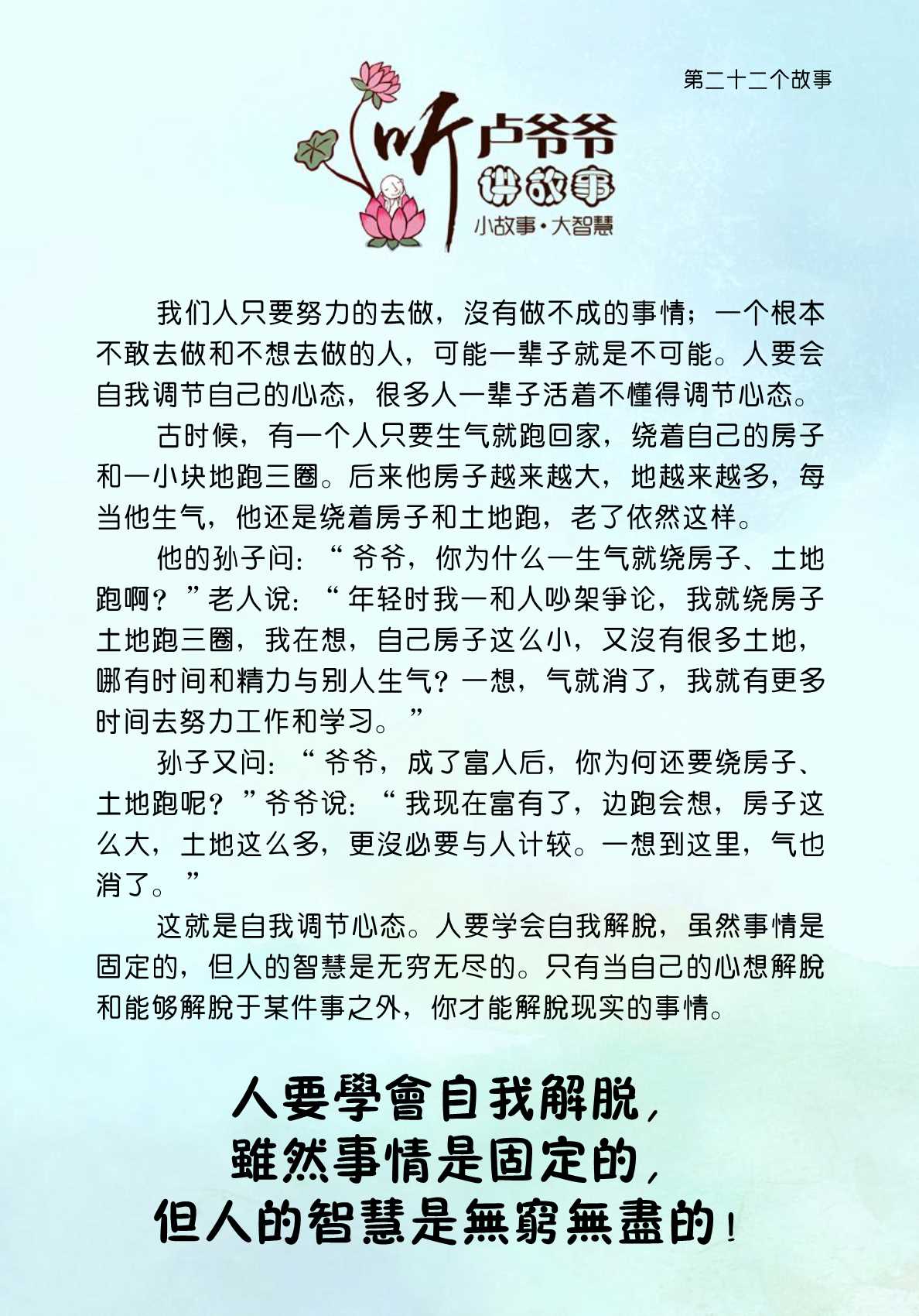 022、人要学会自我解脱,虽然事情是固定的,但人的智慧是无穷无尽的!