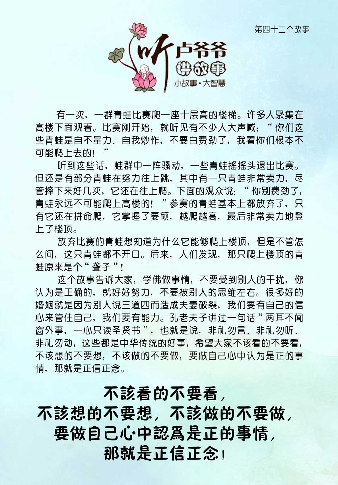 042、不该看的不要看,不该想的不要想,不该做的不要做,要做自己心中认为是正的事情,那就是正信正念!