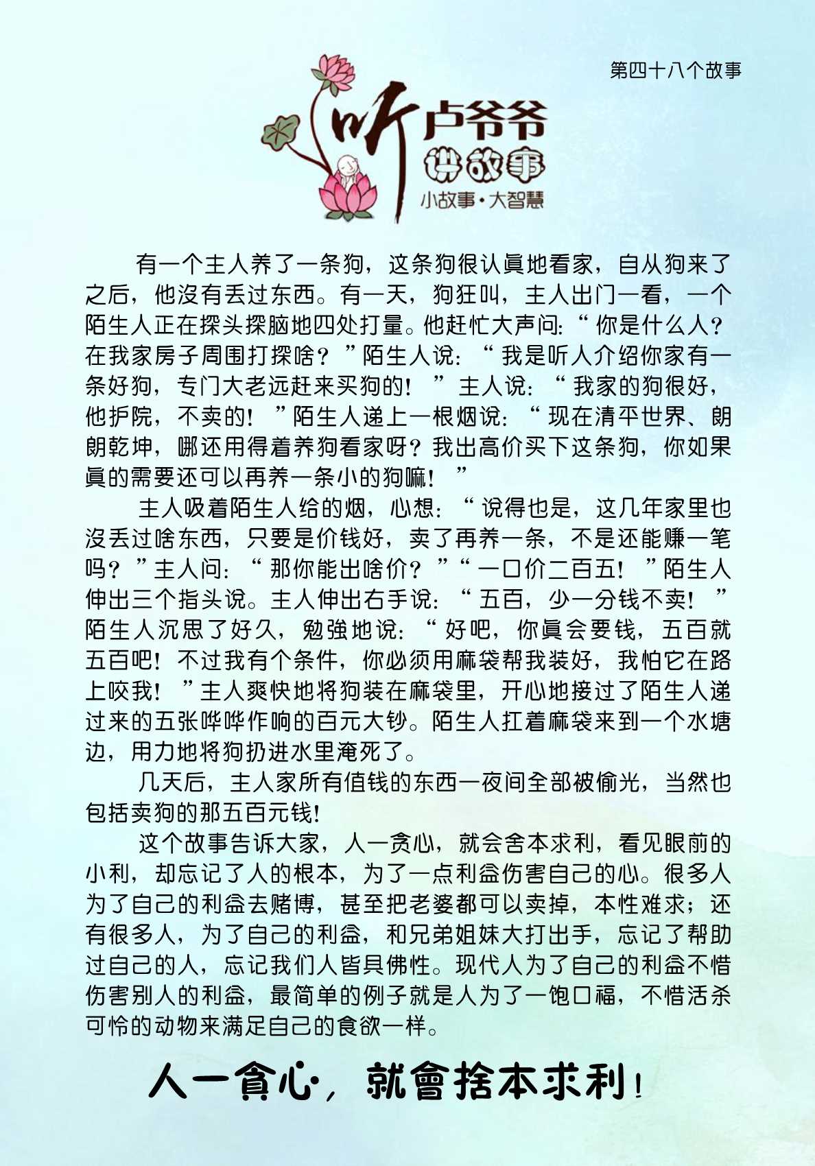 048、人一贪心,就会舍本求利!