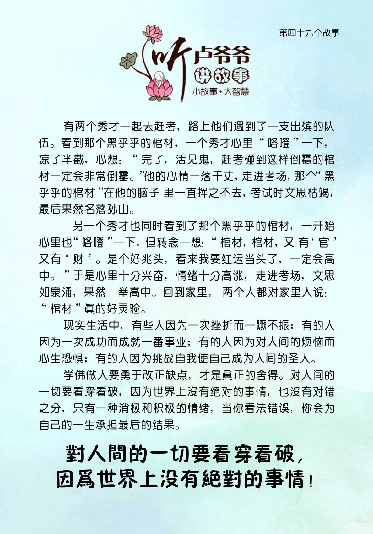 049、对人间的一切要看穿看破,因为世界上没有绝对的事情!