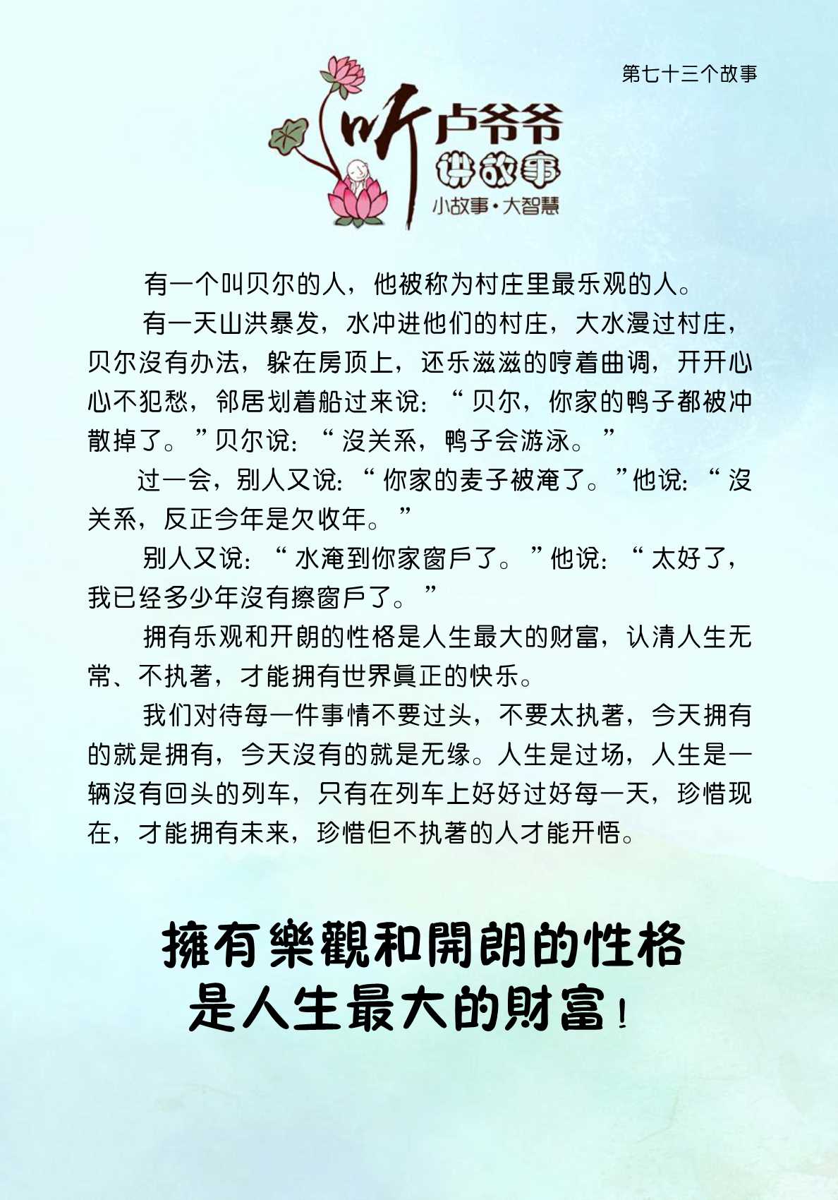 073、拥有乐观和开朗的性格是人生最大的财富!