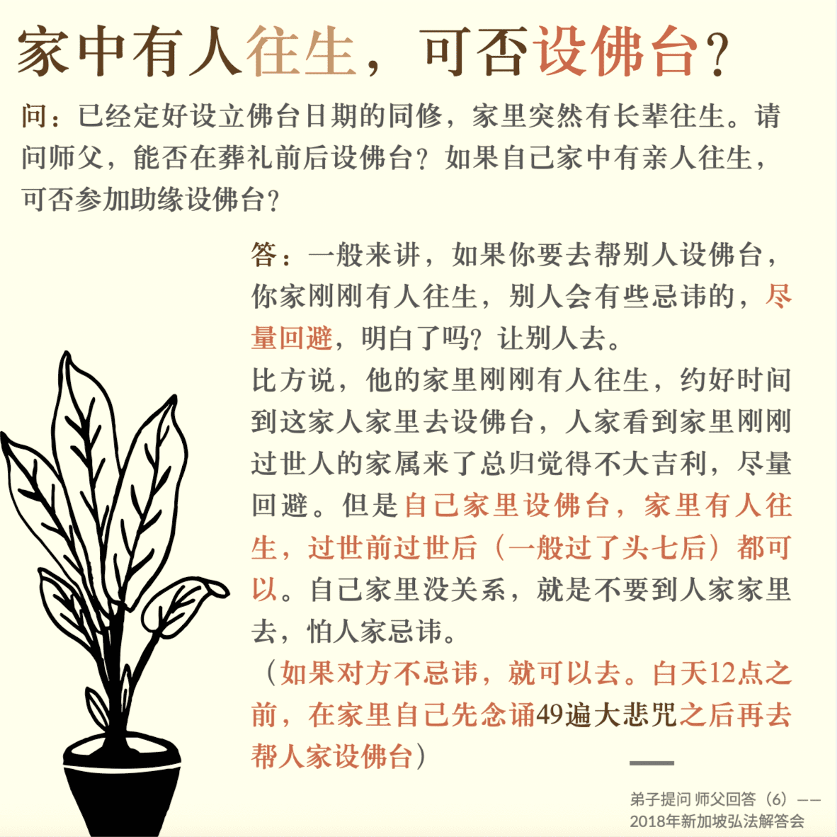 不限会员 家中有人往生,可否设佛台(【6】2018新加坡)