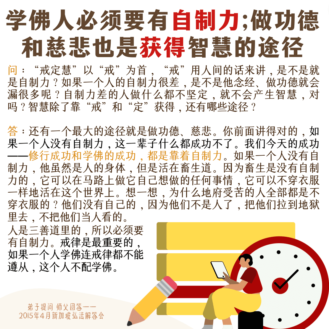 不限会员 学佛人必须要有自制力;做功德和慈悲也是获得智慧的途径【2015年4月新加坡(6)】