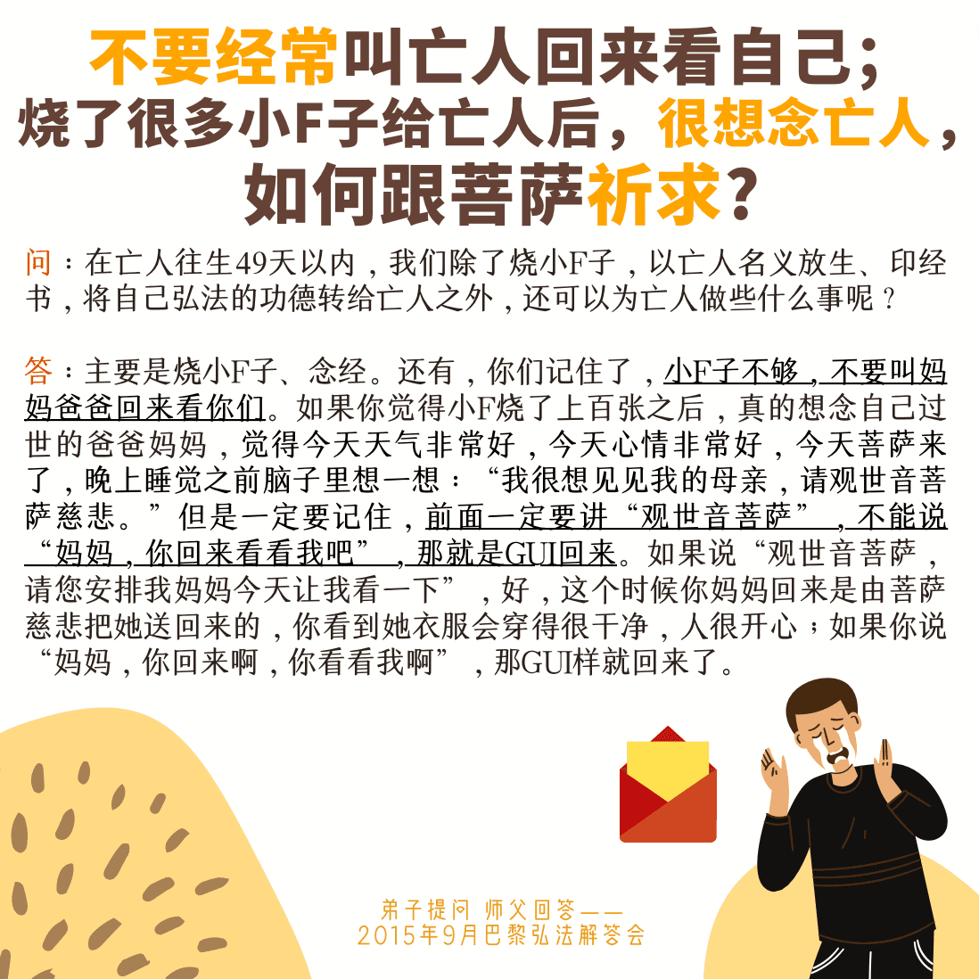 不限会员 不要经常叫亡人回来看自己;烧了很多小F子给亡人后,很想念亡人,如何跟菩萨祈求【2015年9月巴黎(4)】