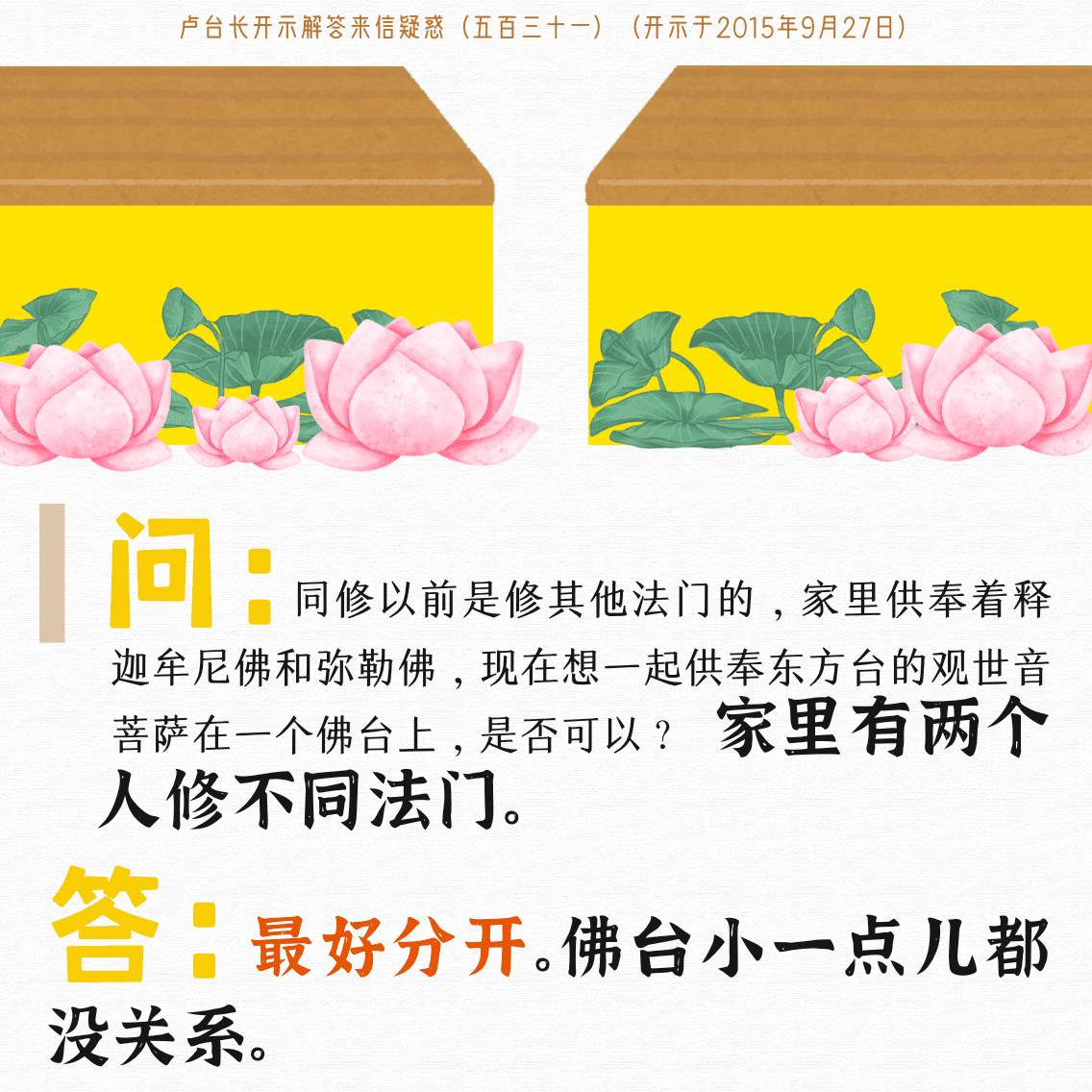 不限会员 家里有两个人修不同法门。答:最好分开。佛台小一点儿都没关系。【来信疑惑(五百三十一)】